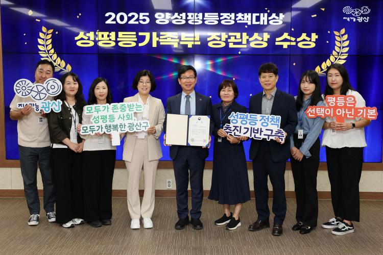 »çÁø ¼³¸í=±¤»ê±¸´Â ¿©¼º½Å¹®°ú Àü±¹¿©¼ºÁö¹æÀÇ¿ø³×Æ®¿öÅ©°¡ °øµ¿ÁÖÃÖÇϰí (»ç)Áö¹æÀÚÄ¡¹ßÀü¼Ò°¡ ÁÖ°üÇÏ´Â ¡®2025 ¾ç¼ºÆòµîÁ¤Ã¥´ë»ó¡¯¿¡¼ ¼ºÆòµî°¡Á·ºÎ Àå°ü»óÀ» ¼ö»óÇß´Ù.