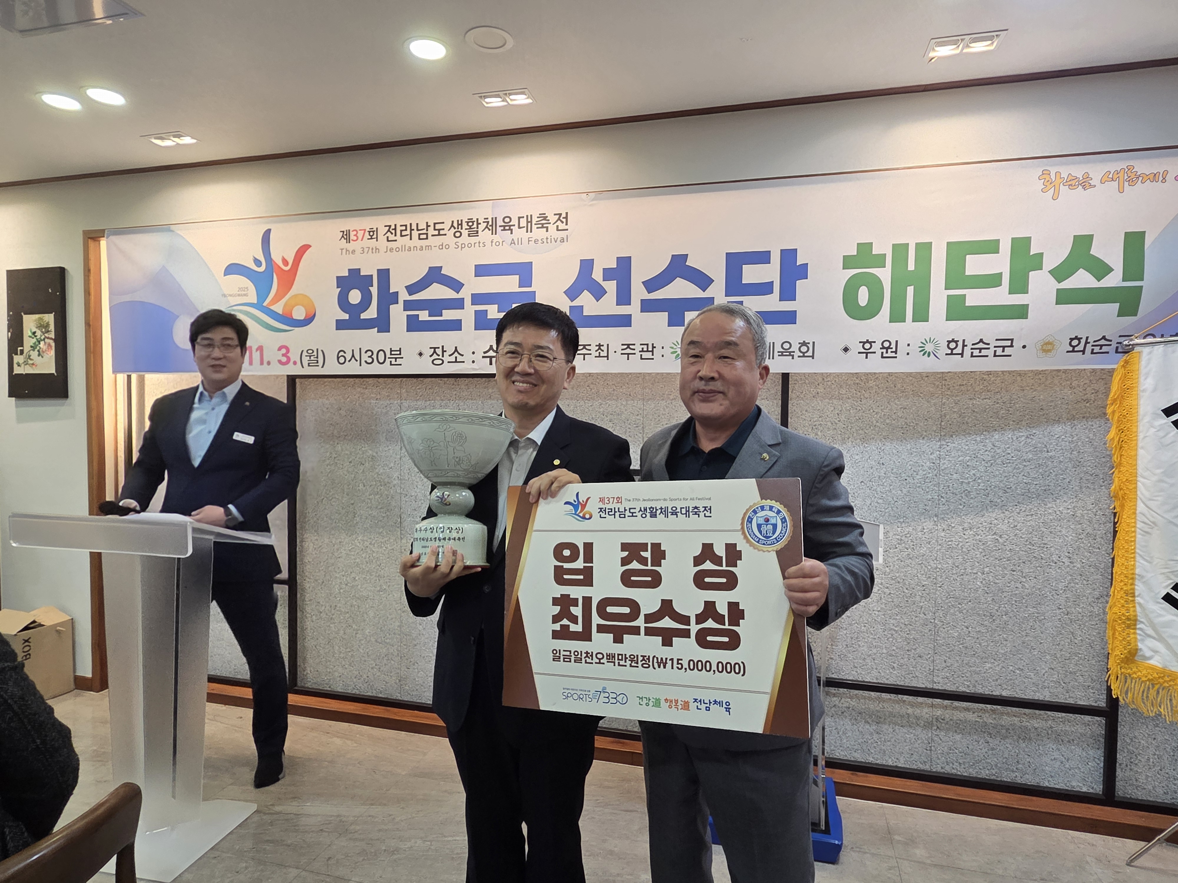À̳¯ ÇØ´Ü½ÄÀº Á¾¸ñº° ÇùȸÀå ¹× Ã¼À° °ü·Ã °ü°èÀÚ µî 100¿© ¸íÀÌ Âü¼®ÇØ, ´ëȸ ±â°£¿¡ ¶Ù¾î³ ¼º°ú¸¦ °ÅµÎ¸ç ȼø±ºÀÇ À§»óÀ» ³ôÀÎ ¼±¼ö´Ü°ú ÁöµµÀÚ, ÀÓ¿øÁøÀÇ Çå½Å¿¡ °¨»ç¸¦ ÀüÇϰí, Á¾¸ñº° ½Ã»ó ¹× ÃàÇϸ¦ ÀüÇÏ´Â ¶æ±íÀº ÀÚ¸®·Î ÁøÇàµÆ´Ù.