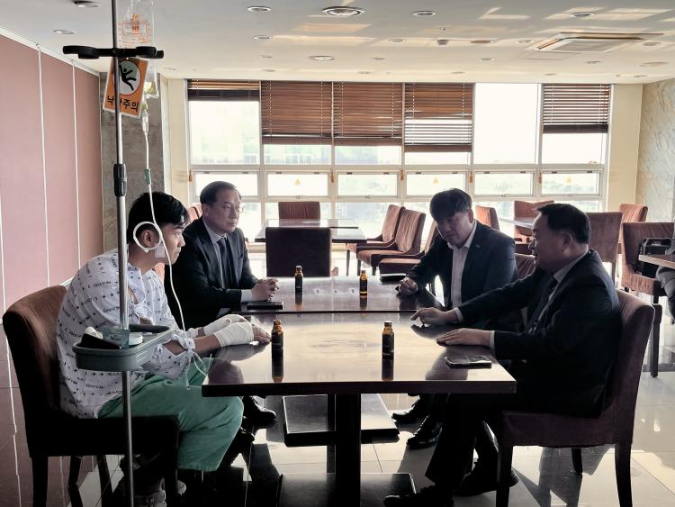 ÈÀç ¹ß»ý ¼Ò½ÄÀ» Á¢ÇÑ ÁÖ¿µ±¹ Àü³²¼Ò¹æº»ºÎÀå, ¼½ÂÈ£ ¿©¼ö¼Ò¹æ¼Àå, ÃÖ¹«°æ Àü³²µµÀÇ¿øÀº º´¿øÀ» ¹æ¹®ÇØ ºÎ»ó ´ë¿øµéÀ» À§¹®ÇÏ°í ºü¸¥ ȸº¹À» ±â¿øÇß´Ù.