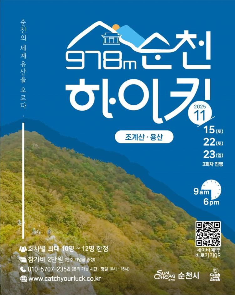 ¼øÃµ½Ã(½ÃÀå ³ë°ü±Ô)´Â ¿À´Â 15ÀϺÎÅÍ 23ÀϱîÁö ÃÑ 3ȸ¿¡ °ÉÃÄ, ¼øÃµÀÇ ´ëÇ¥ »ýÅ ¸í¼Ò¿Í ¼¼°èÀ¯»êÀ» ÀÕ´Â ÇÁ¸®¹Ì¾ö ÇÏÀÌÅ· ÇÁ·Î±×·¥ ¡®2025 ¼øÃµ 978m ÇÏÀÌÅ·¡¯À» ¿î¿µÇÑ´Ù°í ¹àÇû´Ù.