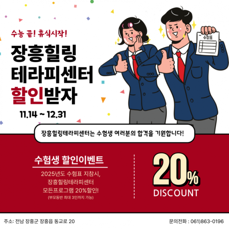 ÀåÈïÈú¸µÅ×¶óÇǼ¾ÅÍ´Â 2025Çг⵵ ´ëÇмöÇдɷ½ÃÇèÀ» Ä¡¸¥ ¼öÇè»ýµéÀ» ÀÀ¿øÇϱâ À§ÇØ ¡®¼ö´É ³¡! È޽ĽÃÀÛ! ¼öÇèÇ¥ ì±â°í Èú¸µ¹ÞÀÚ ÇÁ·Î¸ð¼Ç¡¯À» ÁøÇàÇÑ´Ù°í ¹àÇû´Ù.