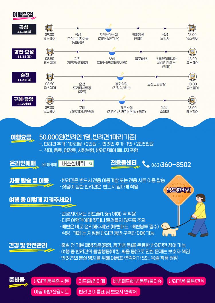 Àü¶ó³²µµ´Â °¡À»À» ¸Â¾Æ °ü±¤Áö ¼øÈ¯¹ö½º ¡®³²µµÇѹÙÄû¡¯ 11¿ù Ưº°ÄÚ½º·Î ¹Ý·Á°ß µ¿¹Ý ´çÀÏ ¿©Çà°ú 1¹Ú2ÀÏ ³²µµ¿©Çà, 2°¡Áö »óǰÀ» ¿î¿µÇÑ´Ù°í ¹àÇû´Ù.