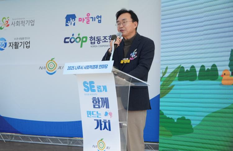 À±º´Å ³ªÁÖ½ÃÀåÀº ¡°»çȸÀû°æÁ¦´Â ÀÌÀ±º¸´Ù »ç¶÷, °æÀﺸ´Ù »ó»ýÀ» ¿ì¼±ÇØ °øµ¿Ã¼¸¦ °ÈÇÏ´Â ³ªÁÖÀÇ Áß¿äÇÑ °¡Ä¡¡±¶ó¸ç ¡°Áö¿ª°ú ÇÔ²² ¼ºÀåÇÏ´Â »çȸÀû°æÁ¦ÀÇ ÀÚ¸³°ú Áö¼Ó °¡´ÉÇÑ »ýÅÂ°è ±¸ÃàÀ» À§ÇØ Àû±Ø Áö¿øÇϰڴ١±°í ¸»Çß´Ù.