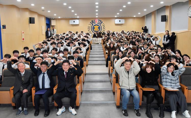 ´ã¾ç±ºÀÌ Áö³ 27ÀÏ Ã¢Æò°íµîÇб³¿¡¼ 3Çгâ ÇлýµéÀ» ´ë»óÀ¸·Î ¡®Ã»³âÀº ´ëÇѹα¹ÀÇ ¹Ì·¡¡¯¸¦ ÁÖÁ¦·Î Ưº° °¿¬À» ¿°í ¼ö´ÉÀ» ¸¶Ä£ û¼Ò³âµé¿¡°Ô ÀÀ¿øÀÇ ¸Þ½ÃÁö¸¦ ÀüÇß´Ù.