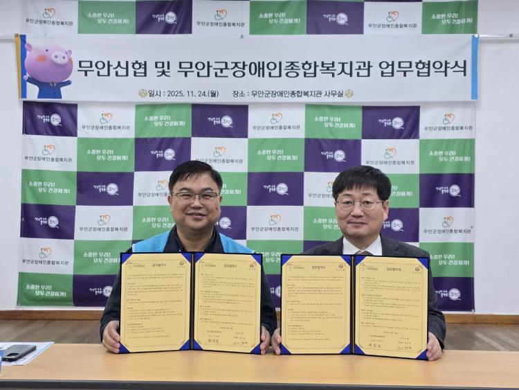¹«¾È±ºÀå¾ÖÀÎÁ¾ÇÕº¹Áö°ü(°üÀå ¹Ú¼º³²)°ú ¹«¾È½ÅÇù(ÀÌ»çÀå Àü¾çÅÂ)Àº Áö³ 11¿ù 24ÀÏ Áö¿ª Àå¾ÖÀÎÀÇ º¹Áö Çâ»ó°ú »çȸÂü¿© Ȱ¼ºÈ¸¦ À§ÇØ ¾÷¹«Çù¾àÀ» ü°áÇß´Ù.