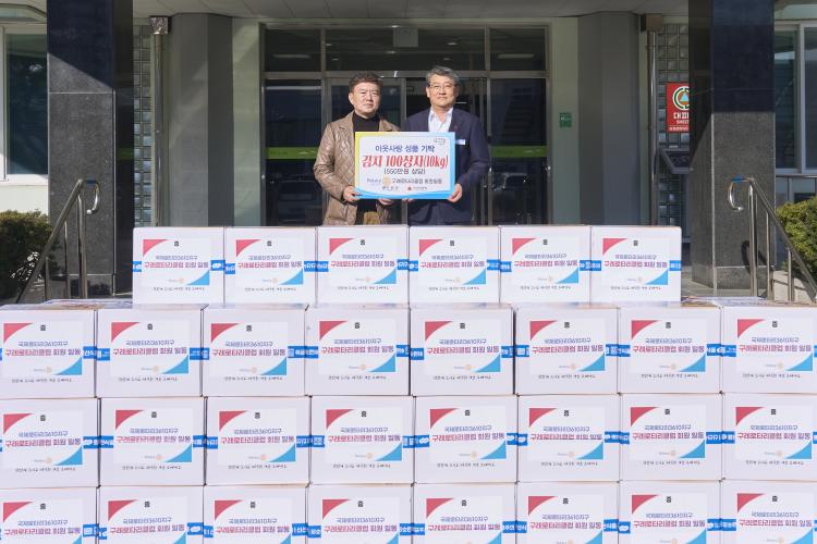 Àü³² ±¸·Ê±ºÀº Áö³ 1ÀÏ(¿ù) ±¹Á¦·ÎŸ¸®3610Áö±¸ ±¸·Ê·ÎŸ¸®Å¬·´(ȸÀå ÇÑâö)ÀÌ °ü³» Ãë¾à°èÃþ °¡Á¤ÀÇ µû¶æÇÑ °Ü¿ï³ª±â¸¦ µ½±â À§ÇØ ±èÄ¡ 100»óÀÚ(10kg, 550¸¸¿ø »ó´ç)¸¦ ±âŹÇϸç Àü´Þ½ÄÀ» °¡Á³´Ù°í ¹àÇû´Ù.