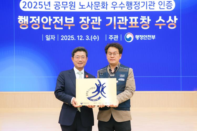 ±¤¾ç½Ã°¡ ÇàÁ¤¾ÈÀüºÎ°¡ ÁÖ°üÇÑ ¡®2025³â °ø¹«¿ø ³ë»ç¹®È ¿ì¼öÇàÁ¤±â°ü ÀÎÁõÁ¦¡¯ ½É»ç¿¡¼ ¿ì¼öÇàÁ¤±â°üÀ¸·Î ¼±Á¤µÅ ÇàÁ¤¾ÈÀüºÎÀå°ü ǥâÀ» ¼ö»óÇß´Ù.