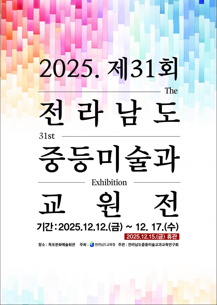 Àü¶ó³²µµ±³À°Ã»(±³À°°¨ ±è´ëÁß)Àº 12ÀϺÎÅÍ 17ÀϱîÁö ¸ñÆ÷¹®È¿¹¼úȸ°ü 1Ãþ Àü½Ã½Ç¿¡¼ ¡®2025. Á¦31ȸ Àü¶ó³²µµÁßµî¹Ì¼ú°ú±³¿øÀü¡¯À» °³ÃÖÇÑ´Ù.