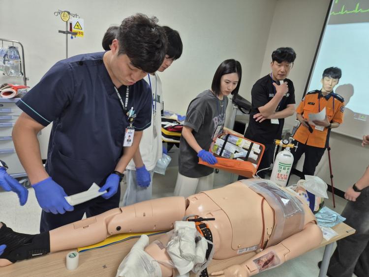 À̹ø ±³À°Àº ¼º°¡·Ñ·Îº´¿ø ±Ç¿ªÀÀ±ÞÀÇ·á¼¾ÅÍÀÇ ±èÀçÇõ ¼¾ÅÍÀåÀ» ºñ·ÔÇØ, À̵Îȯ ÁÖÀÓ°úÀå, ³ëÁ¾°© ÀÀ±ÞÁßȯÀÚ½ÇÀå, ±×¸®°í ¼øÃµ¼Ò¹æ¼ ³²À±±æ ¼Ò¹æÀ§°¡ ÁÖ °»ç·Î Âü¿©ÇØ Àü¹®¼º°ú ½ÇÀü¼ºÀ» µ¿½Ã¿¡ È®º¸Çß´Ù. ¶ÇÇÑ ÀÀ±Þ½Ç °æ·Â°£È£»ç¸¦ Æ÷ÇÔÇÑ ÀÇ·áÁø 8¸íÀÌ ½Ã¹Ä·¹ÀÌ¼Ç ½Ç½À °»ç·Î ¹èÄ¡µÇ¾î, ½ÇÁ¦ ÇöÀå°ú µ¿ÀÏÇÑ È¯°æ¿¡¼ ÀÇ·áÁø°ú ÀÀ±ÞÀÇ·áÁ¾»çÀÚÀÇ ´É·Â Çâ»óÀ» µ½´Â µ¥ ÇÙ½ÉÀûÀÎ ¿ªÇÒÀ» ¼öÇàÇß´Ù.