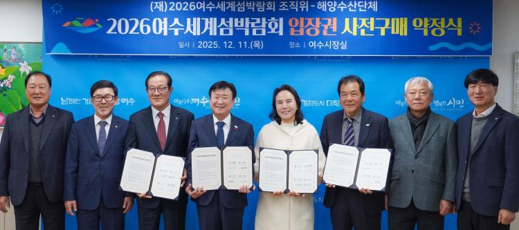 (Àç)2026¿©¼ö¼¼°è¼¶¹Ú¶÷ȸÁ¶Á÷À§¿øÈ¸(ÀÌÇÏ Á¶Á÷À§)´Â Áö³ 11ÀÏ ¿©¼ö½ÃÀå½Ç¿¡¼ ¿©¼ö Áö¿ª ¼öÇù, ¼ö»ê´Üü, ¼ö»ê¹°°¡°ø¾÷ü µî 11°³ ±â°ü‧´Üü¿Í ¼¶¹Ú¶÷ȸ ÀÔÀå±Ç 1¾ï 3õ¸¸¿ø ±Ô¸ðÀÇ ±¸¸Å¾àÁ¤À» ü°áÇß´Ù°í ¹àÇû´Ù.