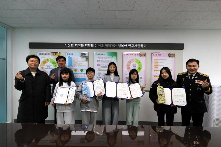 °Áø¼Ò¹æ¼´Â ¼ö»ó ÇлýµéÀÇ ³ë·ÂÀ» °Ý·ÁÇϰí Çб³ ÇöÀåÀÇ ¾ÈÀü¹®È È®»êÀ» À§ÇØ Á¤¿ëÀÎ °Áø¼Ò¹æ¼ÀåÀÌ 3°³ ÃʵîÇб³¸¦ Á÷Á¢ ¹æ¹®ÇØ ½Ã»ó½ÄÀ» ÁøÇàÇßÀ¸¸ç, Çлýµé¿¡°Ô »óÀå°ú ÇÔ²² °Ý·ÁÀÇ ¸Þ½ÃÁö¸¦ Àü´ÞÇß´Ù.