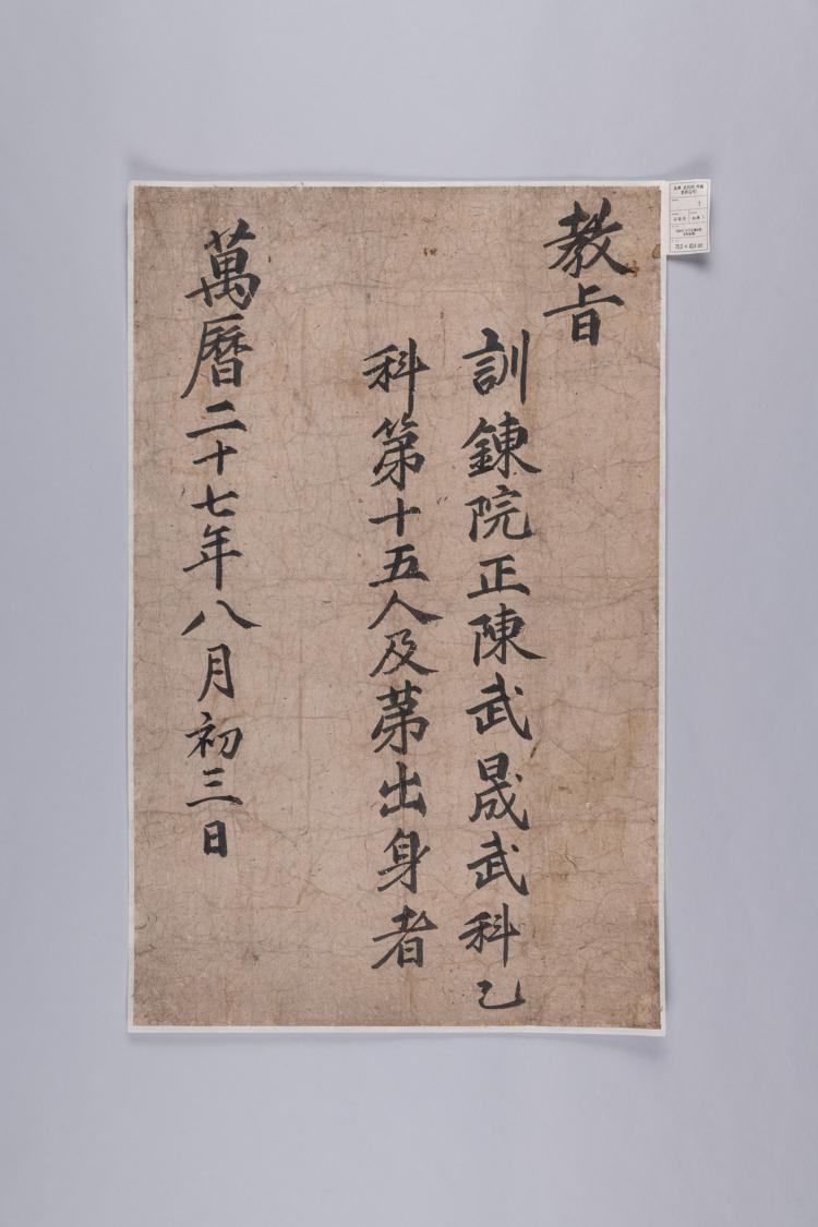 µµ ÁöÁ¤ ¹®È¡¤¹«ÇüÀ¯»ê -°íÈï ¹«¿»ç ¼ÒÀå °í¹®¼, Áø¹«¼º ¹«°ú±ÞÁ¦(È«ÆÐ) ±³Áö(1599)