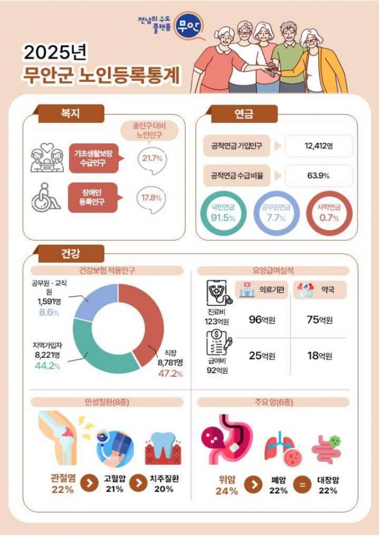 Àü³² ¹«¾È±º(±º¼ö ±è»ê)Àº ³ëÀÎ º¹Áö Á¤Ã¥ ¼ö¸³ÀÇ ±âÃÊÀÚ·á·Î Ȱ¿ëÇϱâ À§ÇØ ¡®2025³â ¹«¾È±º ³ëÀεî·ÏÅë°è¡¯¸¦ ½Å±Ô ÀÛ¼ºÇÏ¿© ±× °á°ú¸¦ °øÇ¥Çß´Ù.