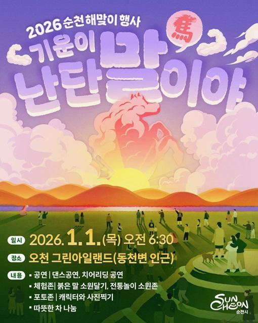 ¼øÃµ½Ã´Â 2026³â 1¿ù 1ÀÏ, ½Ã¹ÎµéÀÇ »õÇØ Ȱ·ÂÀ» ºÒ¾î³ÖÀ» º´¿À³â ÇØ¸ÂÀÌ Çà»ç¸¦ ¿Àõ±×¸°¾ÆÀÏ·£µå¿¡¼ °³ÃÖÇÑ´Ù. ÀÏÃ⠽ð¢ ÀüÀÎ ¿ÀÀü 6½Ã 30ºÐºÎÅÍ 8½Ã±îÁö ½Ã¹Îµé°ú ÇÔ²² »õÇØ¸¦ ¸ÂÀÌÇÒ ¿¹Á¤ÀÌ´Ù.