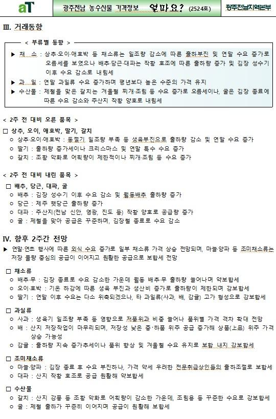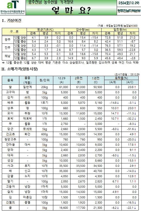 aT ±¤ÁÖÀü³²Áö¿ªº»ºÎ, ³ó¼ö»ê¹° °¡°ÝÁ¤º¸ ¡°¾ó¸¶¿ä?¡± 2524È£ Á¦°ø