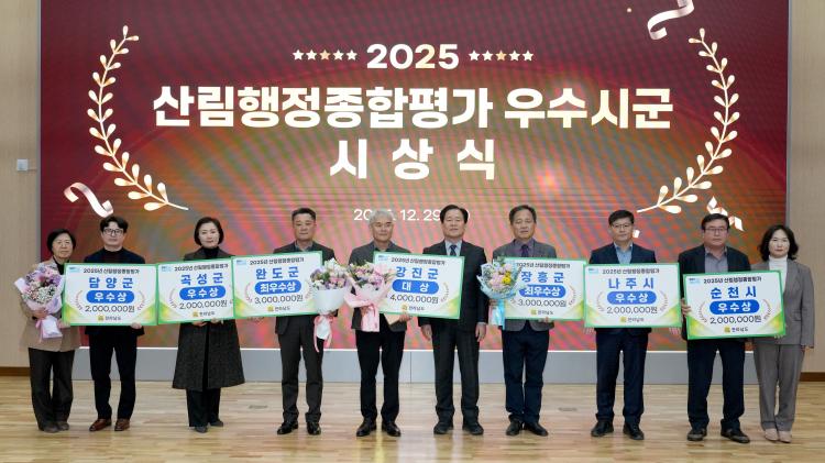 Àü¶ó³²µµ´Â µµ³» 22°³ ½Ã±ºÀ» ´ë»óÀ¸·Î ½Ç½ÃÇÑ 2025³â »ê¸²ÇàÁ¤ Á¾ÇÕÆò°¡ °á°ú, ¿ì¼ö±â°ü 7°³ ½Ã±ºÀ» ¼±Á¤Çß´Ù°í ¹àÇû´Ù.
