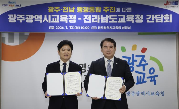 Àü¶ó³²µµ±³À°Ã»(±³À°°¨ ±è´ëÁß)°ú ±¤ÁÖ±¤¿ª½Ã±³À°Ã»(±³À°°¨ ÀÌÁ¤¼±)ÀÌ 12ÀÏ ±¤ÁÖ¡¤Àü³² ÇàÁ¤ ÅëÇÕ¿¡ Âù¼ºÇϰí Çù·ÂÀ» ´ÙÁüÇÏ´Â °øµ¿¹ßÇ¥¹®À» äÅÃÇß´Ù.
