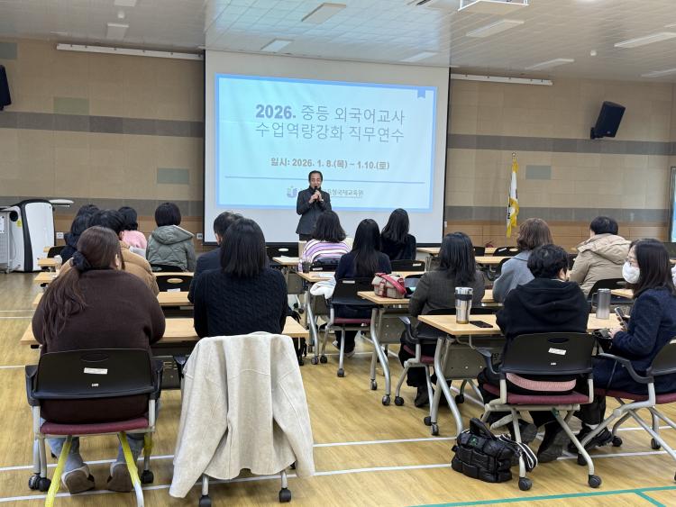 Àü¶ó³²µµ±³À°Ã»±¹Á¦±³À°¿ø(¿øÀå ÃÖÁ¤¿ë)Àº Áö³ 1¿ù 8ÀϺÎÅÍ 10ÀϱîÁö 3Àϰ£ Àü¶ó³²µµ±³À°Ã»±¹Á¦±³À°¿ø¿¡¼ Áßµî ¿Ü±¹¾î(Áß±¹¾î, ÀϺ»¾î) ±³»ç 33¸íÀ» ´ë»óÀ¸·Î 2026³â Áßµî ¿Ü±¹¾î±³»ç ¼ö¾÷¿ª·®°È Á÷¹«¿¬¼ö¸¦ ¼º°øÀûÀ¸·Î ¿î¿µÇß´Ù°í ¹àÇû´Ù.