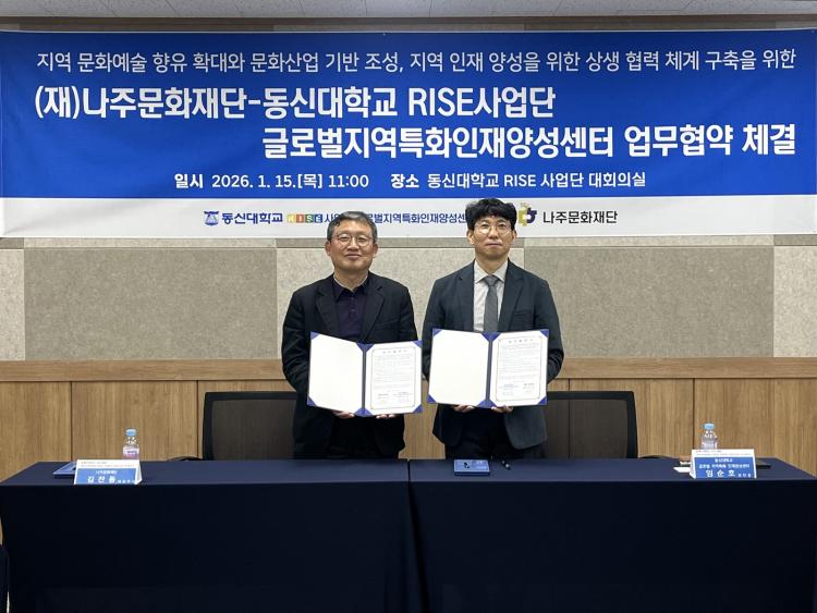 ³ªÁÖ¹®ÈÀç´ÜÀº µ¿½Å´ëÇб³ Áö¿ªÇõ½ÅÁ᫐ ´ëÇÐÁö¿øÃ¼°è(RISE) »ç¾÷´Ü°ú Áö³ 15ÀÏ ¾÷¹«Çù¾àÀ» ¸Î¾ú´Ù°í 16ÀÏ ¹àÇû´Ù. ¾ç ±â°üÀº Áö¿ª ¹®ÈÀÚ»êÀ» ¹ÙÅÁÀ¸·Î ¹®È»ê¾÷ ±â¹ÝÀ» Á¶¼ºÇϰí, Áö¼Ó °¡´ÉÇÑ Çù·Â ¸ðµ¨À» ±¸ÃàÇϱâ·Î Çß´Ù.