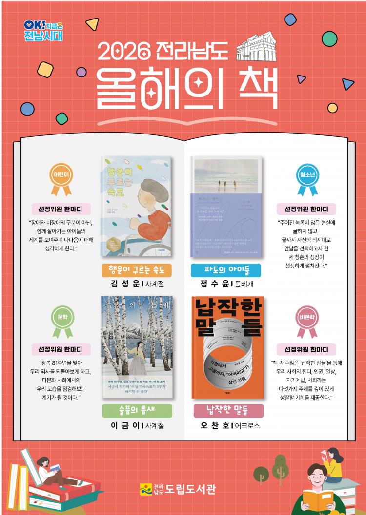 ¿ÃÇØ °Ô½Ã µµ¼´Â Àü¶ó³²µµ ¿ÃÇØÀÇ Ã¥À¸·Î ¼±Á¤µÈ ¡®Çà¿îÀÌ ±¸¸£´Â ¼Óµµ¡¯(±è¼º¿î), ¡®ÆÄµµÀÇ ¾ÆÀ̵顯(Á¤¼öÀ±), ¡®½½ÇÄÀÇ Æ´»õ¡¯(À̱ÝÀÌ), ¡®³³ÀÛÇÑ ¸»µé¡¯(¿ÀÂùÈ£) µîÀÌ´Ù. ÀÌ °¡¿îµ¥ ù ¹øÂ°·Î ¼±Á¤µÈ ¡®Çà¿îÀÌ ±¸¸£´Â ¼Óµµ¡¯¿¡¼´Â ¡®±âÀûÀº ¹Ù±ù¿¡¼ ¿ì¿¬È÷ ¿À¸ç °ÅÀú ÁÖ¾îÁöÁö ¾Ê´Â´Ù¡¯´Â ¹®±¸¸¦ °Ô½ÃÇØ ³ë·Â°ú ¼±ÅÃÀÇ Àǹ̸¦ ÀüÇϰí ÀÖ´Ù.