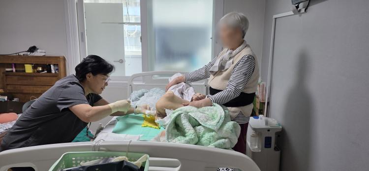 Àå±â¿ä¾ç ÀçÅÃÀÇ·á¼¾ÅÍ ÀÇ·áÁøµéÀÌ ´ë»óÀÚ °¡Á¤À» ¹æ¹®ÇØ È¯ÀÚµéÀ» µ¹º¸°í ÀÖ´Ù.