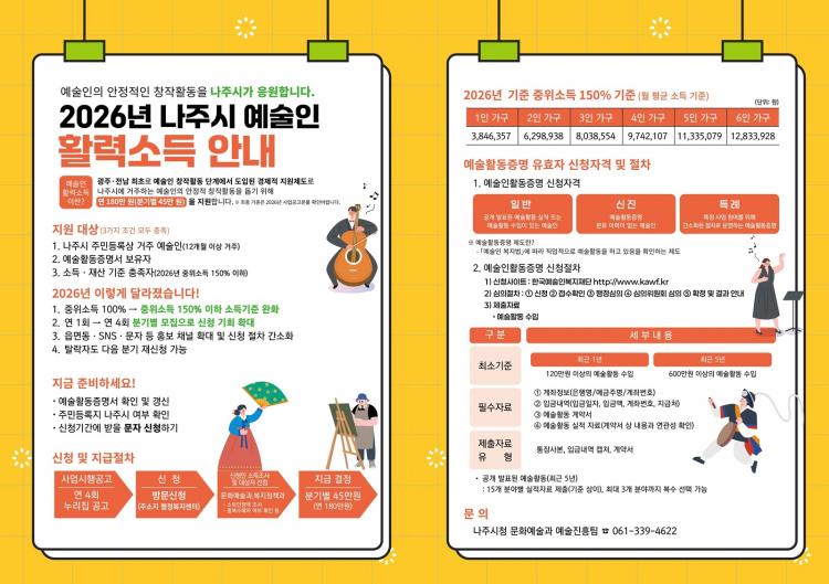 ³ªÁֽð¡ Áö¿ª ¿¹¼úÀÎÀÇ Ã¢ÀÛ È°µ¿°ú »ýȰ ¾ÈÁ¤À» Áö¿øÇϱâ À§ÇØ ¡®2026 ¿¹¼úÀΠȰ·Â¼Òµæ Áö¿ø±Ý¡¯ ½ÅûÀ» ¹Þ´Â´Ù.