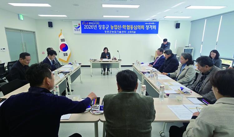 Áö³´Þ 12ÀÏ ÀåÈﱺ³ó¾÷±â¼ú¼¾ÅÍ ¼ÒȸÀǽǿ¡¼ ¿¸° '2026³â ÀåÈﱺ ³ó¾÷»ê¡¤ÇÐÇùµ¿½ÉÀÇȸ Á¤±âȸ'¿¡¼ Âü¼®ÀÚµéÀÌ ¿ÃÇØ ÃßÁøÇÒ ³óÃÌÁøÈï ½Ã¹ü»ç¾÷ Áö¿ø ´ë»óÀ» ½ÉÀÇÇϰí ÀÖ´Ù. [»çÁø=ÀåÈﱺ]