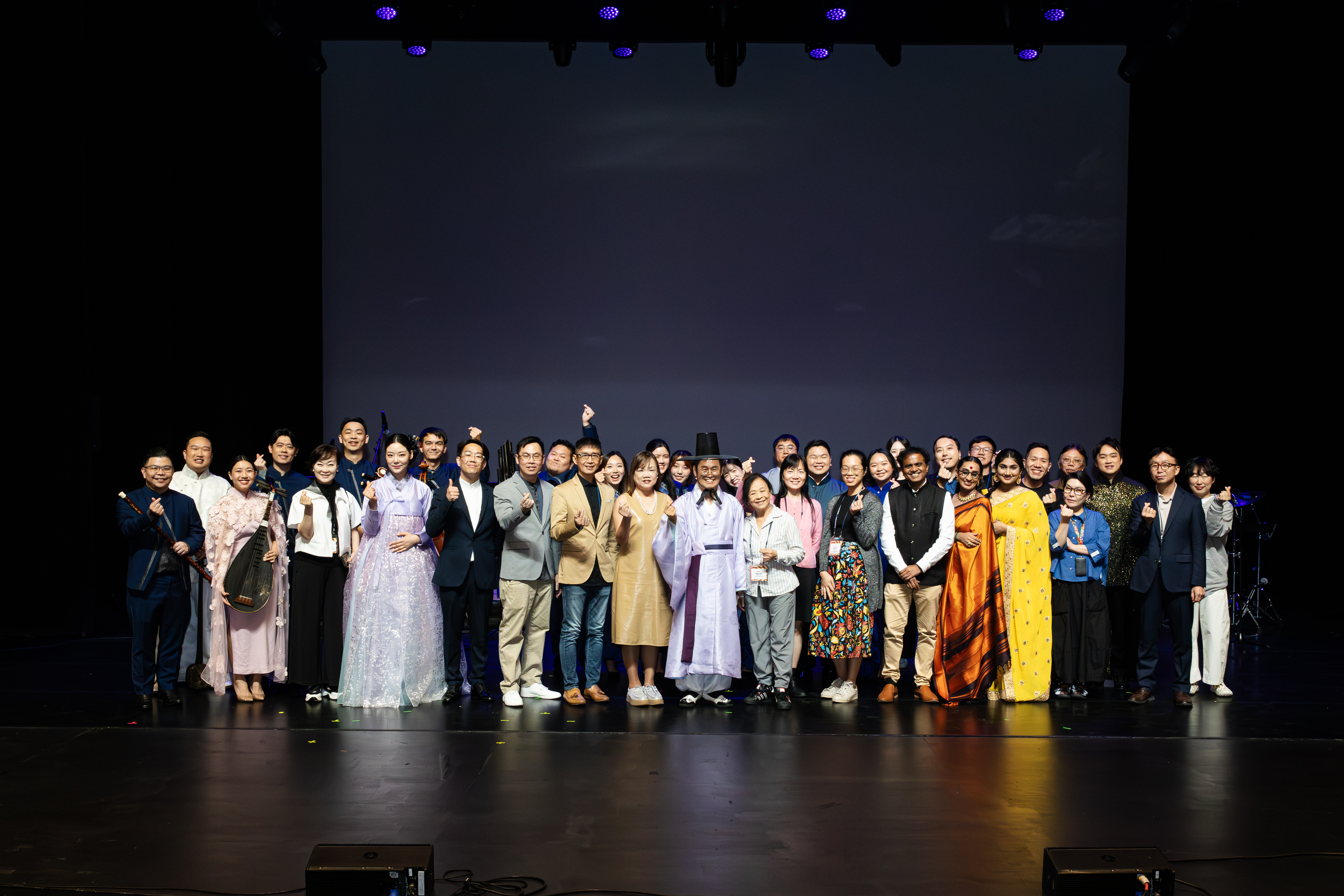 | ±è Àü´çÀå(¾ÕÁÙ ¿À¸¥ÂÊ¿¡¼ Àϰö ¹øÂ°)ÀÌ ÇÑ-½Ì°¡Æ÷¸£ ¼ö±³ 50Áֳ⠱â³ä °ø¿¬ Á÷ÈÄ ´Ù±¹Àû Ã⿬Áø°ú ÇÔ²² Æ÷Á ÃëÇϰí ÀÖ´Ù. [»çÁø=ACC] |