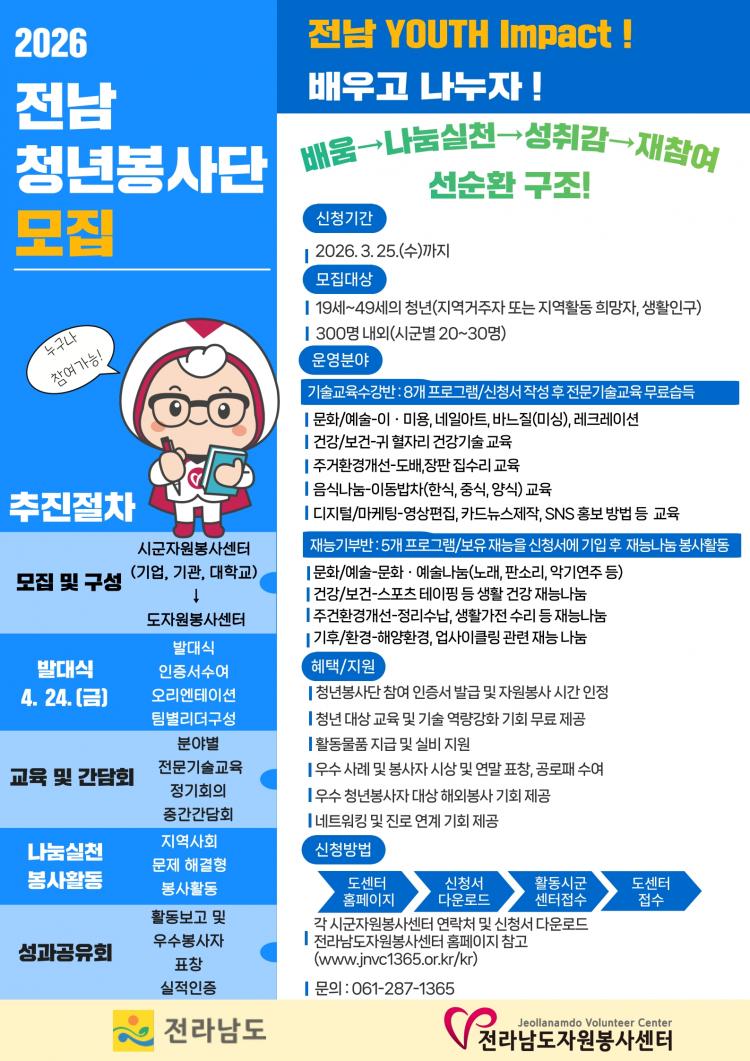 °Áø±º, Àü³² û³âºÀ»ç´Ü ¸ðÁý⋯ ¿À´Â 20ÀϱîÁö 19~49¼¼ ´ë»ó, ±³À°¼ö°¡¤Àç´É±âºÎ·Î ¿î¿µ