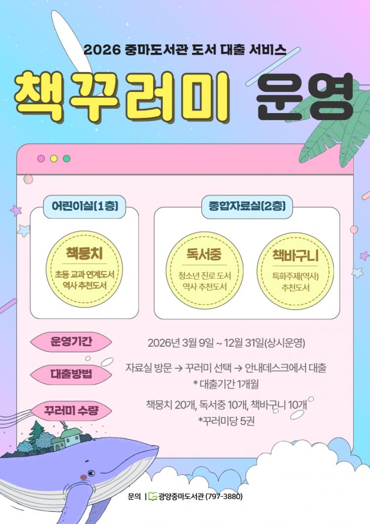 ±¤¾çÁ߸¶µµ¼°üÀÌ ½Ã¹Î µ¶¼È°µ¿ Áö¿ø°ú Áö¿ª»çȸ µ¶¼¹®È È®»êÀ» À§ÇØ Áö³ÇØ¿¡ ÀÌ¾î ¡®¸ÂÃãÇü Ã¥ ²Ù·¯¹Ì¡¯ ¼ºñ½º¸¦ ¿î¿µÇÑ´Ù.