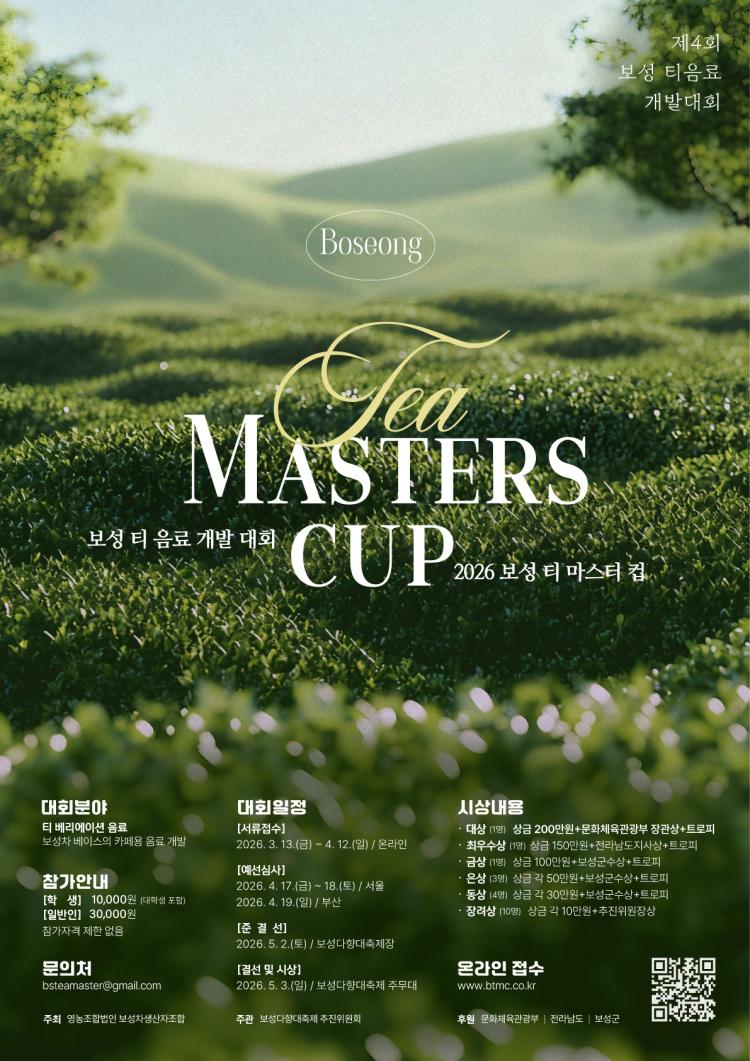 º¸¼º±ºÀº ´ÙÀ½´Þ 3ÀÏ º¸¼ºÂ÷ÀÇ ºê·£µå °¡Ä¡ È®»ê°ú Â÷ ¹®È ¼Òºñ ÃËÁøÀ» À§ÇØ ¡®Á¦4ȸ º¸¼º Ƽ ¸¶½ºÅÍÄÅ(Boseong Tea Master Cup, BMTC)¡¯À» ¿¬´Ù°í ¹àÇû´Ù.