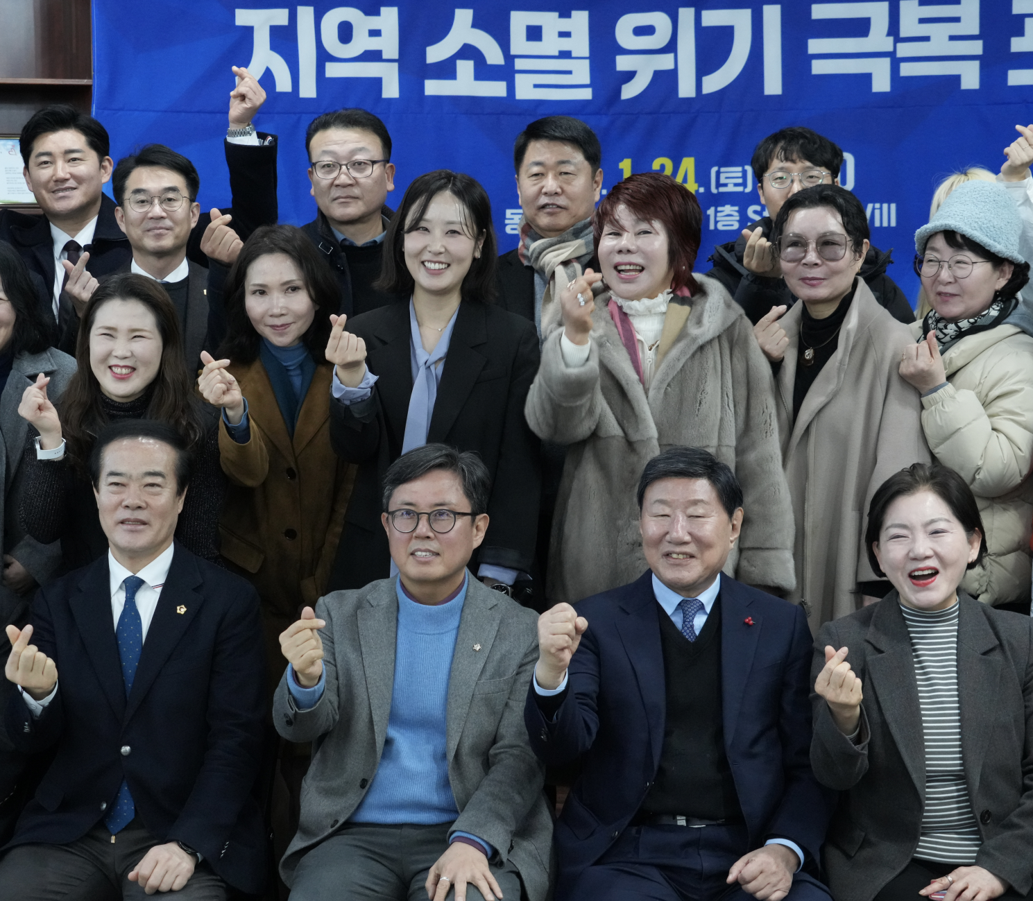 | ±èÈñ¼± ¿¹ºñÈ帰¡ ¡®Áö¿ª ¼Ò¸ê À§±â ±Øº¹ Æ÷·³¡¯ Çà»ç¿¡¼ Âü¼®ÀÚµé°ú ÇÔ²² ±â³äÃÔ¿µÀ» Çϸç Áö¿ª Çö¾È ÇØ°á ÀÇÁö¸¦ ´ÙÁö°í ÀÖ´Ù. [»çÁø=Èĺ¸ÀÚ Ãø] |
