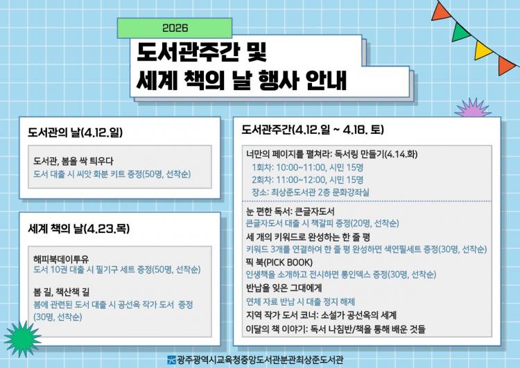 ±¤ÁÖ±¤¿ª½Ã±³À°Ã»Áß¾Óµµ¼°üÀÌ µµ¼°üÀÇ ³¯°ú µµ¼°üÁÖ°£, ¼¼°è Ã¥ÀÇ ³¯À» ¸Â¾Æ ½Ã¹Î Âü¿©Çü µ¶¼ÃàÁ¦¸¦ ¿¬´Ù.