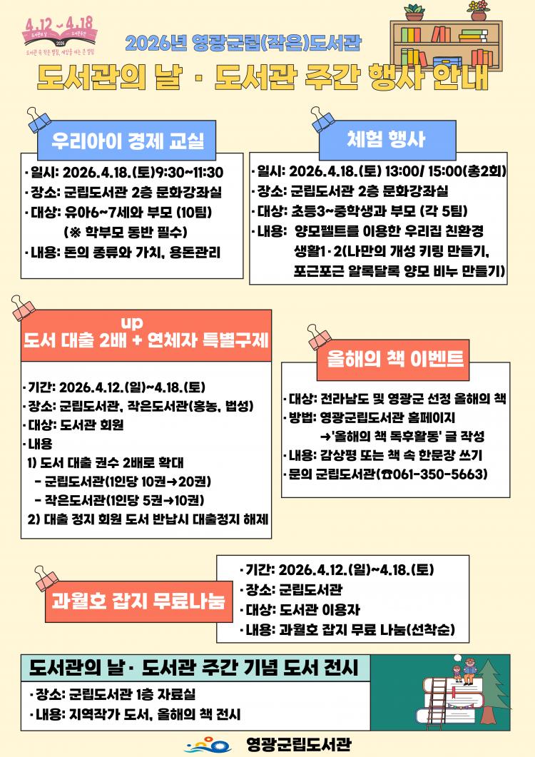 Çà»ç ±â°£¿¡´Â À¯¾Æ¿Í ºÎ¸ð¸¦ ´ë»óÀ¸·Î ÇÑ ¡®¿ì¸® ¾ÆÀÌ °æÁ¦ ±³½Ç¡¯°ú ¡®¾ç¸ðÆçÆ®¸¦ ÀÌ¿ëÇÑ ¿ì¸®Áý ģȯ°æ »ýȰ¡¯ µî üÇè ÇÁ·Î±×·¥ÀÌ ÁøÇàµÈ´Ù. ¶Ç Áö¿ªÀÛ°¡ µµ¼ Àü½Ã¿Í ¿ÃÇØÀÇ Ã¥ °¨»óÆò À̺¥Æ®µµ ÇÔ²² ¸¶·ÃµÈ´Ù.