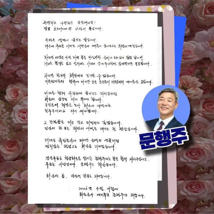 ¹®ÇàÁÖ ¡°ÇÑ Ç¥°¡ ȼøÀÇ º½ ¿¬´Ù¡±⋯ ¡®Ã»·Å¡¤Èñ¸Á¡¯ ÁöÁö È£¼Ò