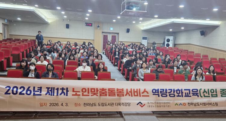 Àü¶ó³²µµ»çȸ¼ºñ½º¿øÀº Áö³ 3ÀÏ Àü³²µµ¸³µµ¼°ü¿¡¼ ½Ã¡¤±º ³ëÀθÂÃãµ¹º½¼ºñ½º ´ã´çÀÚ¿Í ¼öÇà±â°ü Àü´ã»çȸº¹Áö»ç µî 120¸íÀÌ Âü¼®ÇÑ °¡¿îµ¥ ¡®2026³â Á¦1Â÷ ³ëÀθÂÃãµ¹º½¼ºñ½º ¿ª·®°È ±³À°¡¯À» ¿¾ú´Ù.