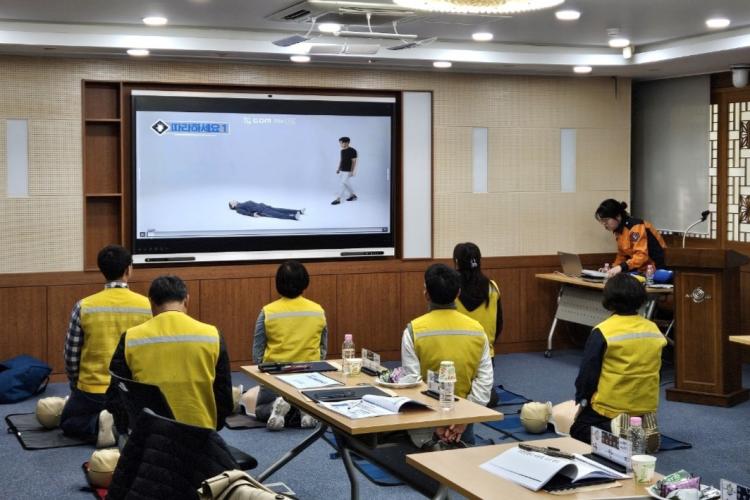 ¾ÈÀüº¸¾È°üµéÀº ±³À°¿¡¼ ÁÖ¿ä ÀÓ¹«¿Í ¿ªÇÒÀ» ÀÍÈ÷°í ¼Òȱ⠻ç¿ë¹ý°ú ½ÉÆó¼Ò»ý¼ú, ÀÚµ¿½ÉÀåÃæ°Ý±â »ç¿ë¹ý µîÀ» ½Ç½ÀÇß´Ù. Áö¿ª °÷°÷¿¡¼ ¹ß»ýÇÒ ¼ö ÀÖ´Â »ýȰ ¾ÈÀü»ç°í¿¡ ½Ã¹ÎÀÌ Áï°¢ ´ëÀÀÇÒ ¼ö ÀÖ´Â ±â¹ÝÀ» ´ÙÁö´Â µ¥ ÁßÁ¡À» µ×´Ù.