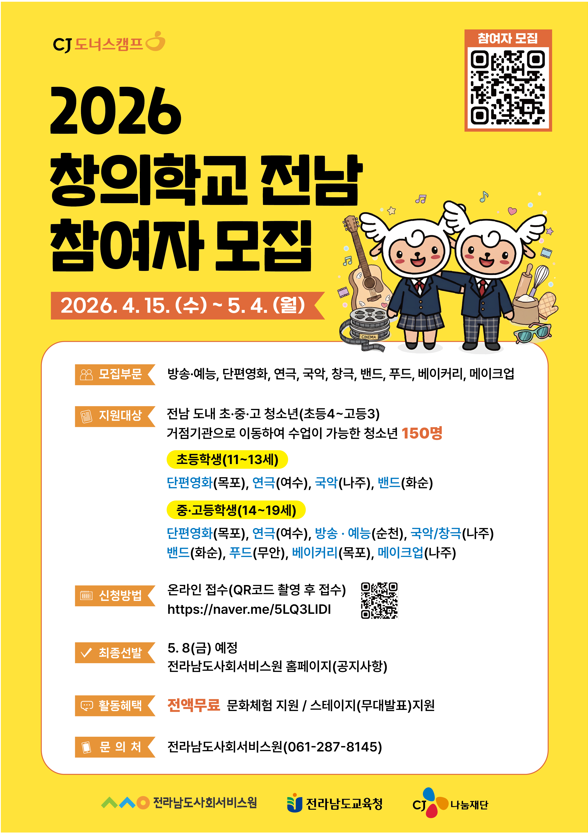 2026 âÀÇÇб³ Àü³² Âü¿©ÀÚ ¸ðÁý Æ÷½ºÅÍ. [»çÁø=Àü³²»çȸ¼ºñ½º¿ø]