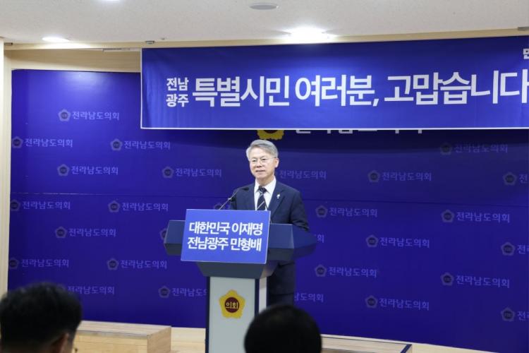 ¹Î È帴 À̳¯ ±¤ÁÖ½ÃÀÇȸ ºê¸®ÇηëÀ» ½ÃÀÛÀ¸·Î ¹«¾È Àü³²µµÀÇȸ ºê¸®Çηë, ¼øÃµ½Ãû ¼ÒȸÀǽǿ¡¼ Â÷·Ê·Î ±âÀÚȸ°ßÀ» ¿°í ¡°±¤ÁÖ¿Í Àü³², µ¿ºÎ¿Í ¼ºÎ¸¦ ³ª´©´Â ½Ã´ë¸¦ ³Ñ¾î ÇϳªÀÇ Æ¯º°½Ã·Î °¡¾ß ÇÑ´Ù¡±°í ¸»Çß´Ù.