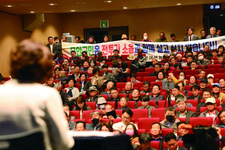 Áö³ 1ÀÏ ¹«¾È±º ½Â´Þ¹®È¿¹¼úȸ°ü ´ë°´ç¿¡¼ ±¤ÁÖ ±º°øÇ× ÁֹΠ¼³¸íȸ¿¡¼ ½Ã¹Î´Üü °ü°èÀÚµéÀÌ ±º°øÇ× ÀÌÀü ¹Ý´ë ³»¿ëÀÌ ´ã±ä Çö¼ö¸·À» µé°í ÀÖ´Ù. [»çÁø=¿¬ÇÕ´º½º]