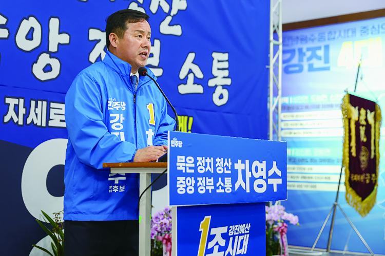 Â÷¿µ¼öÀÇ °Áø±º¼ö µµÀüÀº ´Ü¼øÈ÷ ÇÑ Á¤Ä¡ÀÎÀÇ Á÷Ã¥ À̵¿À¸·Î º¸ÀÌÁö ¾Ê´Â´Ù. ¿ªµµÀå¿¡¼ ¹è¿î ½ÂºÎÀÇ °¨°¢, Áö¿ª»çȸ¿Í Á¶Á÷ ¿î¿µ¿¡¼ ÀÍÈù °æÇè, µµÀÇȸ¿¡¼ ½×Àº ¿¹»ê °¨°¢ÀÌ À̹ø ¼±°Å¿¡¼ ÇϳªÀÇ ¾ð¾î·Î ¸ðÀ̰í Àֱ⠶§¹®ÀÌ´Ù. ±×´Â º¯È¸¦ ¸»Çϸ鼵µ Ãß»óÀûÀÌÁö ¾Ê°í, ºñÀüÀ» ¸»Çϸ鼵µ ´Ã ¼ýÀÚ¿Í ±¸Á¶¸¦ ÇÔ²² ²¨³½´Ù. ±×·¡¼ Â÷¿µ¼ö°¡ ³»³õ´Â ¸Þ½ÃÁö´Â ¡®³ª¸¦ »Ì¾Æ ´Þ¶ó¡¯´Â È£¼Ò¿¡ ¸Ó¹°Áö ¾Ê´Â´Ù. ¿ÀÈ÷·Á °ÁøÀ̶ó´Â Áö¿ªÀ» ¾ÕÀ¸·Î ¾î¶² ±¸Á¶·Î ¿òÁ÷ÀÏ °ÍÀÎÁö¿¡ ´ëÇÑ Á¦¾È¼¿¡ °¡±õ´Ù. À̹ø ¼±°Å°¡ °á±¹ »ç¶÷À» °í¸£´Â ÀÏÀ̸鼵µ µ¿½Ã¿¡ Áö¿ªÀÇ ¼³°èµµ¸¦ °í¸£´Â ÀÏÀ̶ó¸é, Â÷¿µ¼ö´Â ÀÚ½ÅÀÌ ±× ¼³°èµµ¸¦ ±×¸± ¼ö ÀÖ´Â È帶ó°í ¸»Çϰí ÀÖ´Ù.
