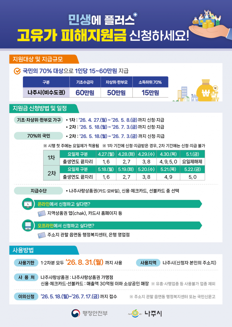 ³ªÁÖ½Ã, °íÀ¯°¡ ÇÇÇØÁö¿ø±Ý ¿À´Â 27ÀÏ Á¢¼ö