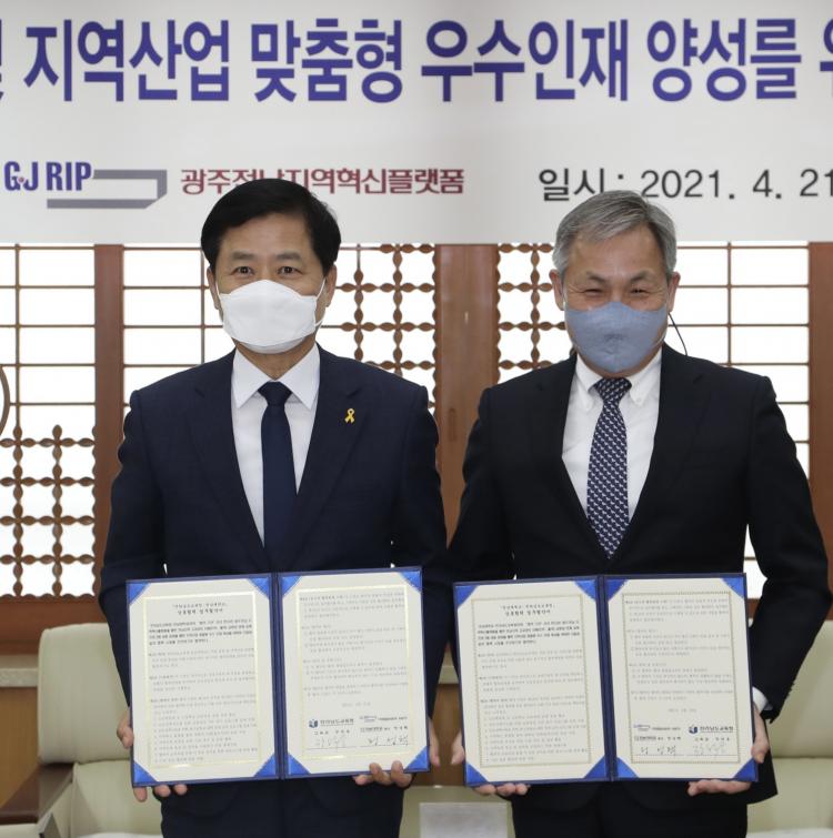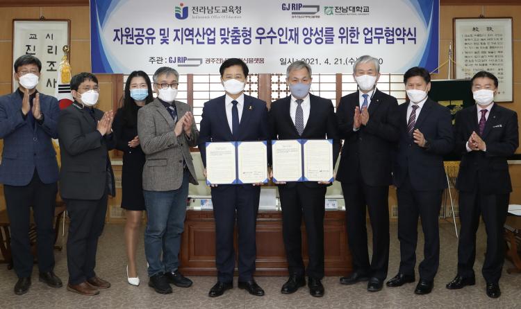 Àü¶ó³²µµ±³À°Ã»(±³À°°¨ Àå¼®¿õ)°ú Àü³²´ëÇб³(ÃÑÀå Á¤¼ºÅÃ)°¡ ¹Ì·¡»çȸ ¸ÂÃãÇü Áö¿ªÀÎÀç ¾ç¼ºÀ» À§ÇØ ¼ÕÀ» Àâ¾Ò´Ù.