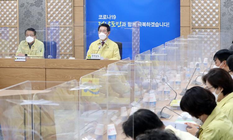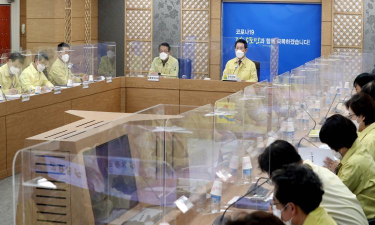 Àü¶ó³²µµ´Â 7ÀÏ µµÃ» ¿µ»óȸÀǽǿ¡¼ ¡®Äڷγª19 ±ä±Þ ¹æ¿ª´ëåȸÀÇ¡¯¸¦ ¿¾î ´Ü°èÀû ÀÏ»óȸº¹ ÀÌÈÄ °è¼ÓµÇ´Â Äڷγª19 °¨¿° È®»ê¼¼¸¦ Â÷´ÜÇÏ°í ¹æ¿ª »óȲÀ» ¾ÈÁ¤ÈÇϱâ À§ÇØ ¸Ó¸®¸¦ ¸Â´ò´Ù.