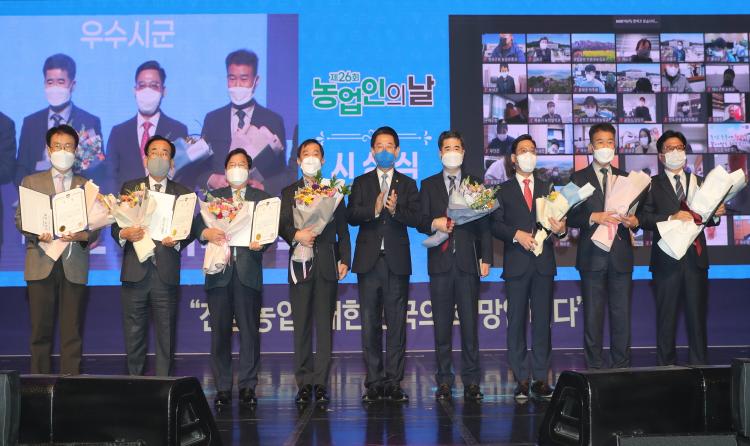 ¿ÃÇØ Àü³²µµ ÁÖ°ü ³óÁ¤¾÷¹« Æò°¡¿¡¼± °ÁøÀÌ ¿µ¿¹ÀÇ ´ë»óÀ» ¼ö»óÇß´Ù. ¿µ±¤․À强ÀÌ ÃÖ¿ì¼ö»óÀ», ³ªÁÖ․±¤¾ç․´ã¾ç․ȼø․¿µ¾ÏÀº °¢°¢ ¿ì¼ö»óÀ» Â÷ÁöÇß´Ù.