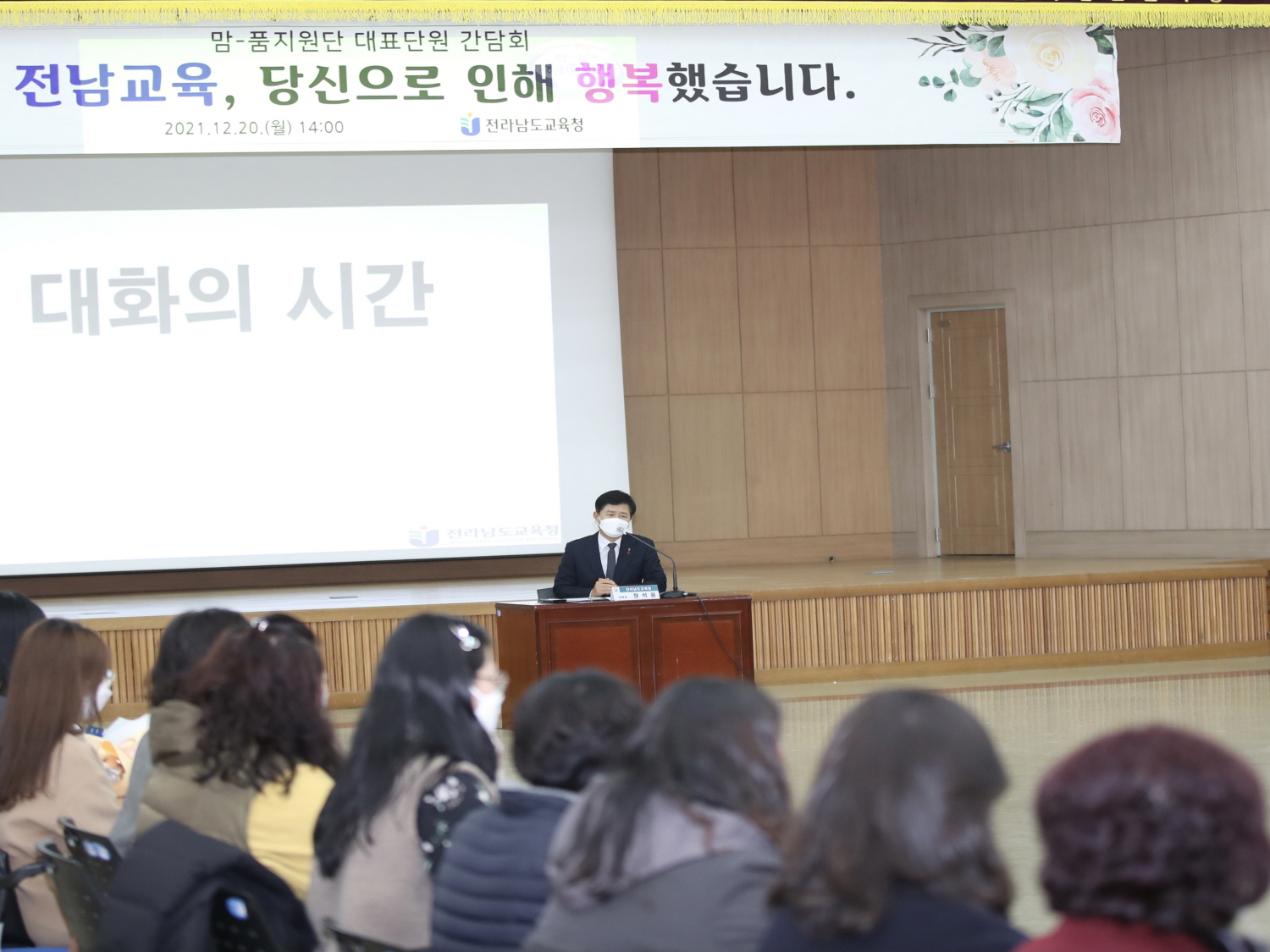 Àü¶ó³²µµ±³À°Ã»(±³À°°¨ Àå¼®¿õ)ÀÌ 12¿ù 20ÀÏ(¿ù) û»ç 2Ãþ ´ëȸÀǽǿ¡¼¡®2021. ¸¾-ǰÁö¿ø´Ü ´ëÇ¥´Ü¿ø °£´ãȸ¡¯¸¦ °®°í »ç¶û°ú °ü½ÉÀÌ ÇÊ¿äÇÑ ¹è·Á´ë»ó Çлý¿¡ ´ëÇÑ Áö¿ø ¹æ¾ÈÀ» ¸ð»öÇß´Ù.