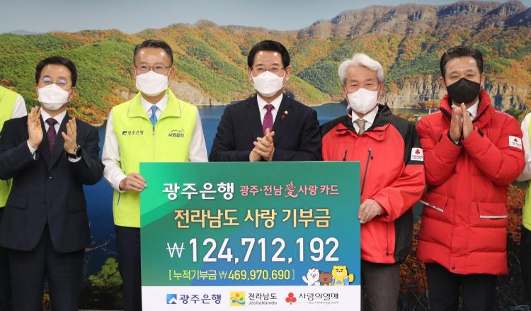 Àü¶ó³²µµ´Â 29ÀÏ ±¤ÁÖÀºÇà(ÀºÇàÀå ¼ÛÁ¾¿í)À¸·ÎºÎÅÍ ¡®±¤ÁÖ․Àü³²äñ »ç¶ûÄ«µå¡¯ ¼º±Ý 1¾ï 2õ¸¸ ¿øÀ» ±âŹ¹Þ¾Ò´Ù°í ¹àÇû´Ù.