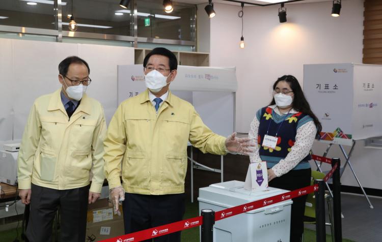 Àü¶ó³²µµ´Â Á¦20´ë ´ëÅë·É¼±°Å »çÀüÅõÇ¥¸¦ ¾ÕµÎ°í À¯±ÇÀÚµéÀÌ Äڷγª·ÎºÎÅÍ ¾ÈÀüÇÑ È¯°æ¿¡¼ °øÁ¤ÇÑ ÇÑ Ç¥¸¦ Çà»çÇϵµ·Ï ÅõÇ¥¼Ò Áغñ»óȲÀ» Á¡°ËÇß´Ù.